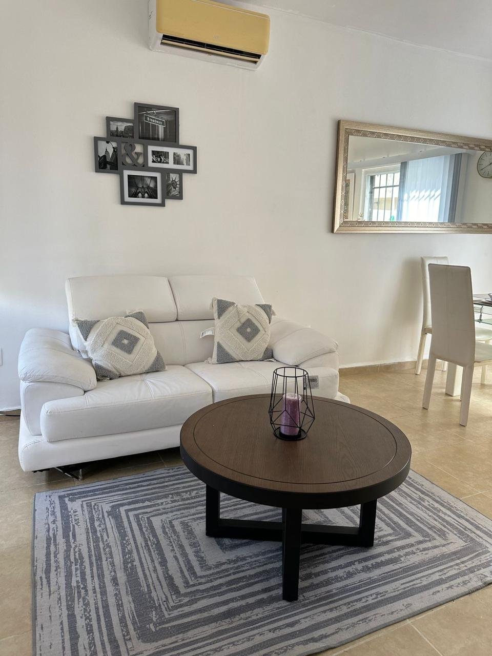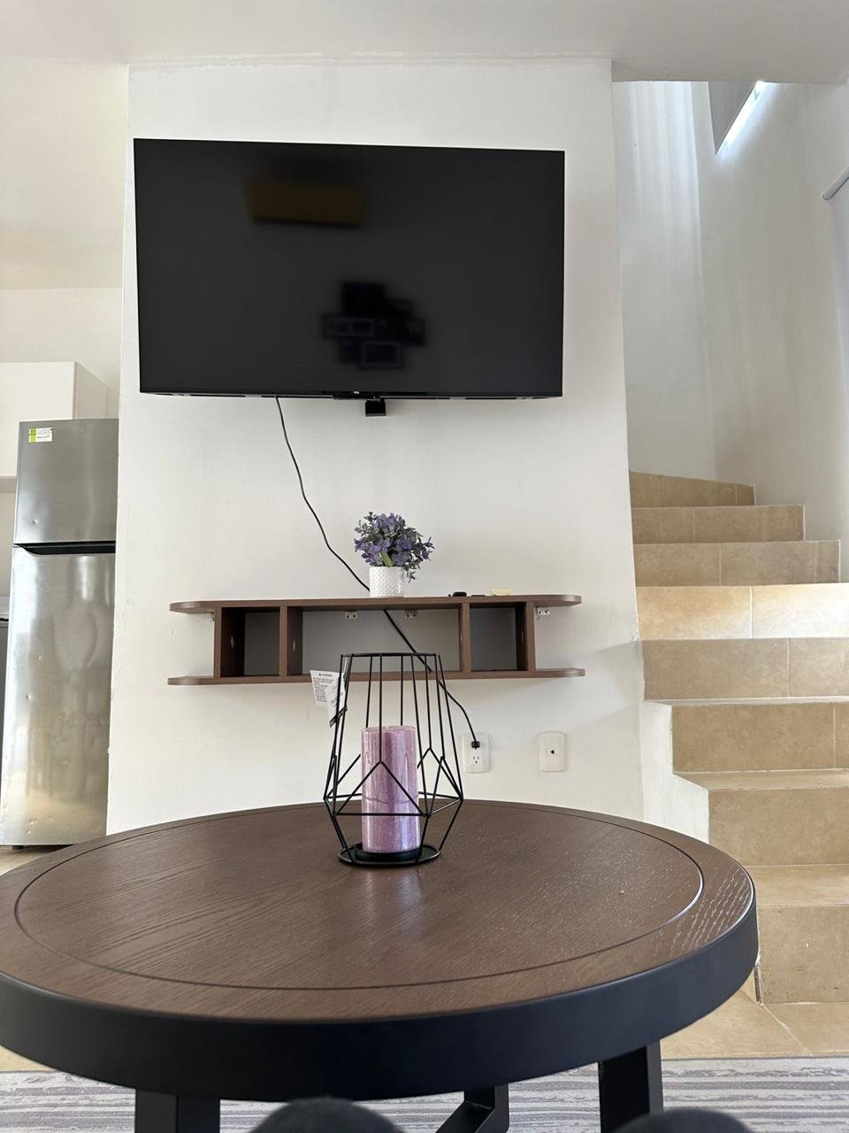 Sofá en sala, mesa de centro con televisión 55” todo nuevo de alta calidad