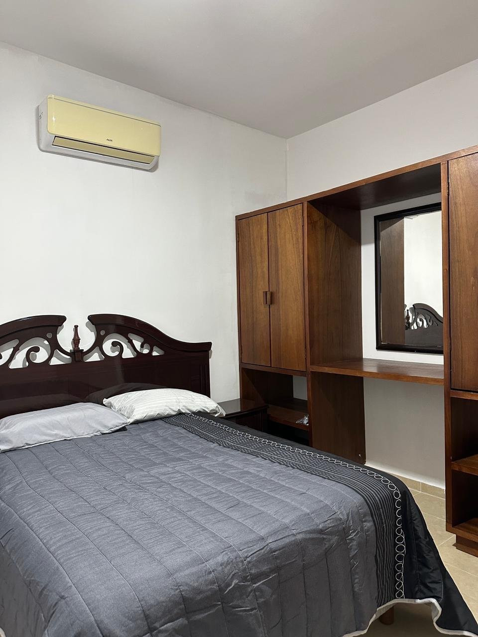 Cuenta 2 habitaciones: Ambas con camas matrimoniales, cabecera y burós, closets cerrados con cajones