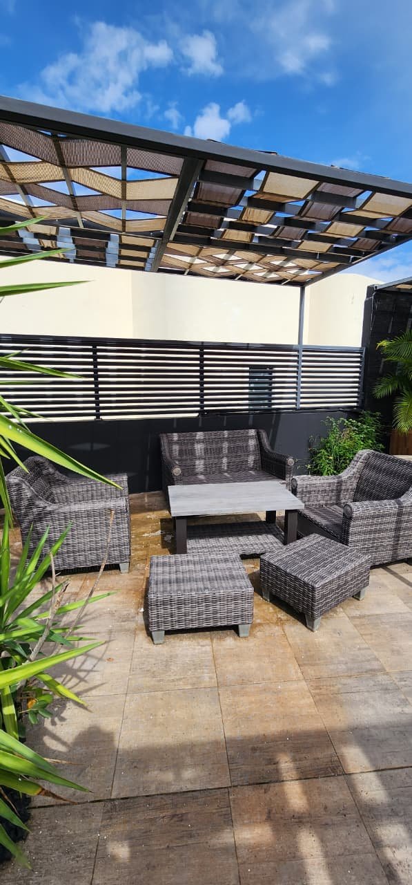 Hermosa terraza con vista al jardín.